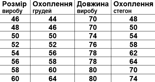 Розмірна сітка на фото