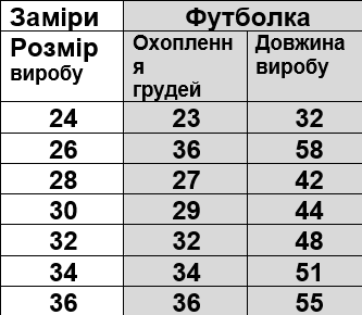Размерная сетка.
