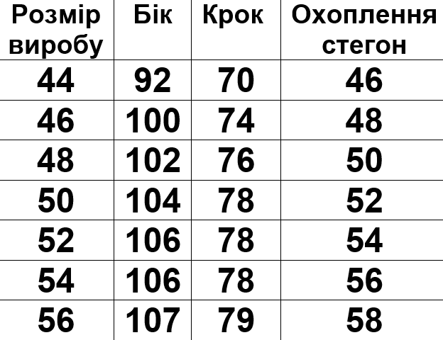 Розмірна сітка на фото.