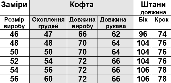Розмірна сітка на фото.