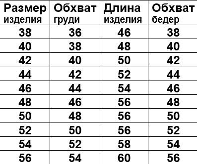 Размерная сетка указана на втором фото к изделию.