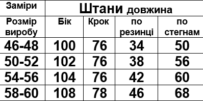 Розмірна сітка на фото.
