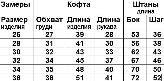 Размерная сетка на фото.