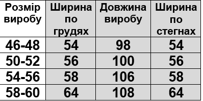 Розмірна сітка на фото